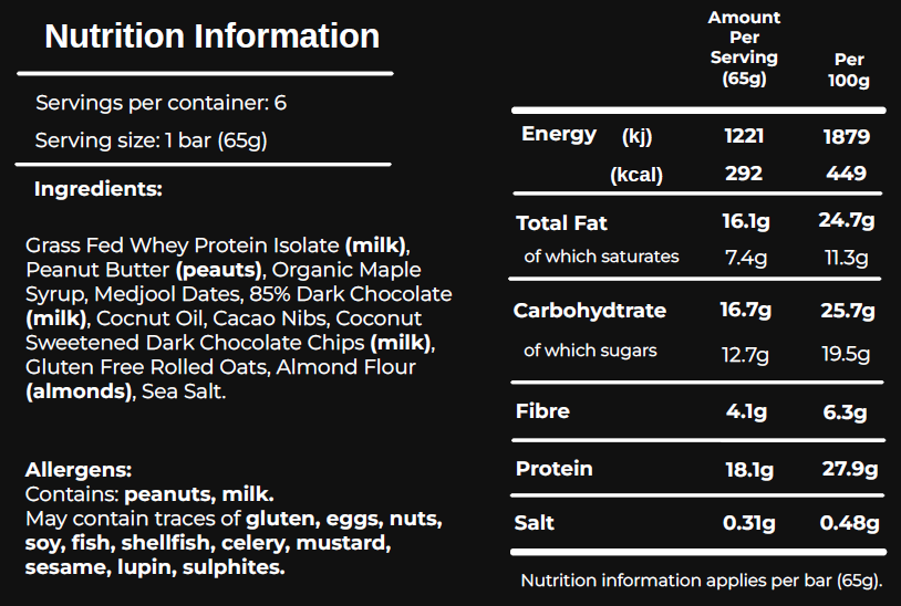 Our original flavour chocolate peanut butter protein bar. Made from 100% natural ingredients. Built for training days & busy schedules. (Box of 9 bars).